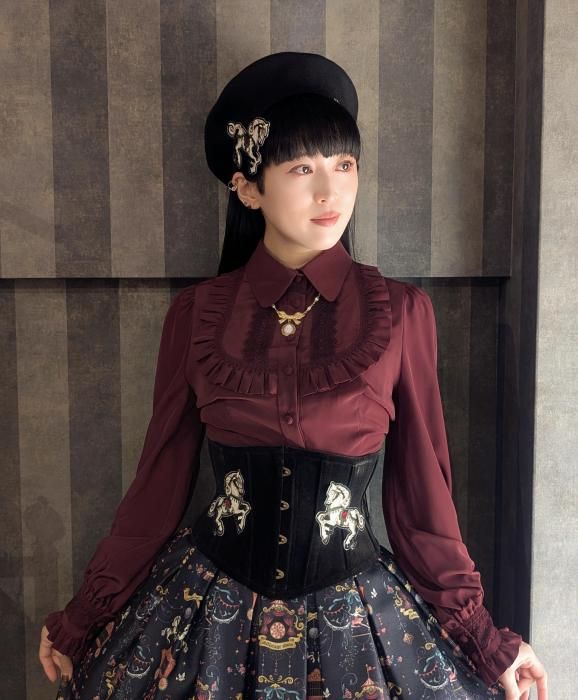 CIRCUS SERIES 〜サーカスシリーズ〜 abilletage 「サーカスシリーズ」より たっぷりあしらわれたフリルがゴージャスなブラウスが登場♪ さらりとした着心地、 上品な光沢感、しわになりにくいデシン生地を使用。 【素材】 ポリエステル...100% 【サイズ】 着丈…51cm 袖丈…69cm バスト…99cm 日本製