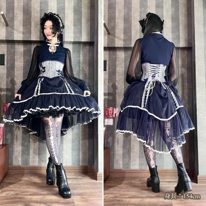 【数量限定】corset tights DOUBLE LACE -Purple Ribbon-