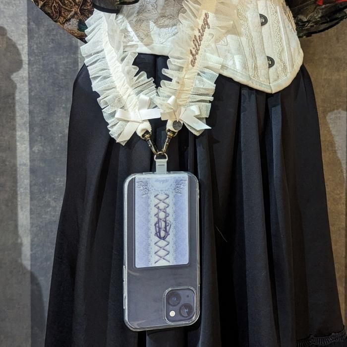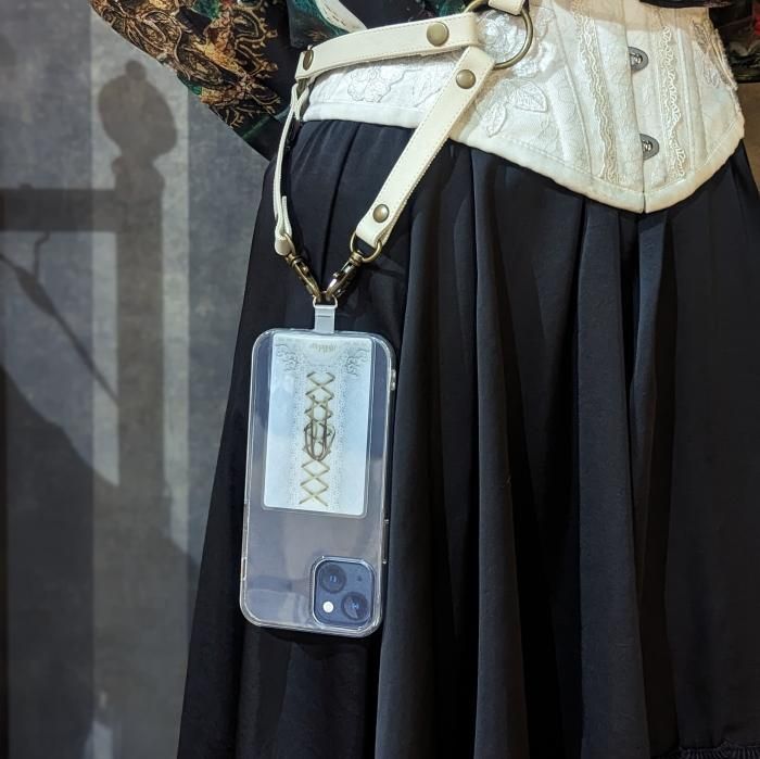 コルセットブランドならではのレースアップデザインが楽しめるフォンタブです。 フォンタブ(ストラップフォルダー)はケースとスマホ本体の間に挟み込むだけで、既存のスマホケースを簡単にスマホショルダーケースとすることができるアイテム 柔らかなTPU素材を使用したソフトフォンタブで 厚みは約0.5mmと非常に薄く、ワイヤレス充電対応ケースでのご利用であれば 本製品を挟み込んでも問題なく充電機能をお使いいただけます。 素材 TPU、他 サイズ ヨコ:約55mm タテ:約88mm 厚さ:約0.5mm