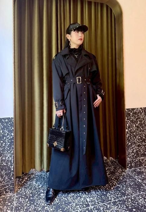 ウール混素材を使用した、ロング丈のトレンチコートです。