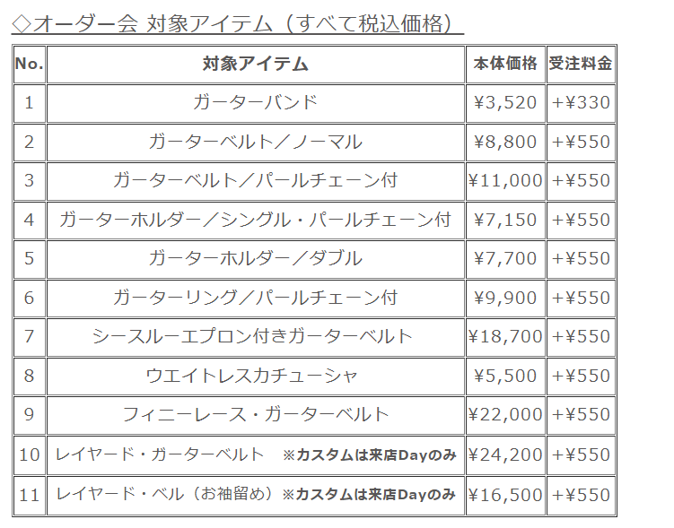 ●レイヤード・ガーターベルト/レイヤード・ベル(お袖留め)のカスタムオーダー